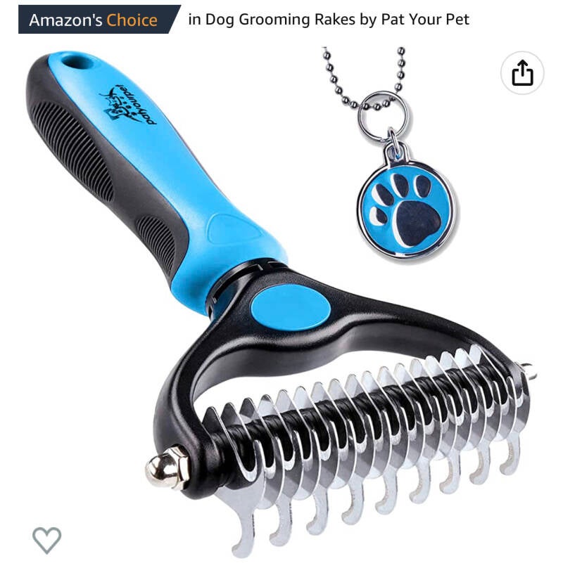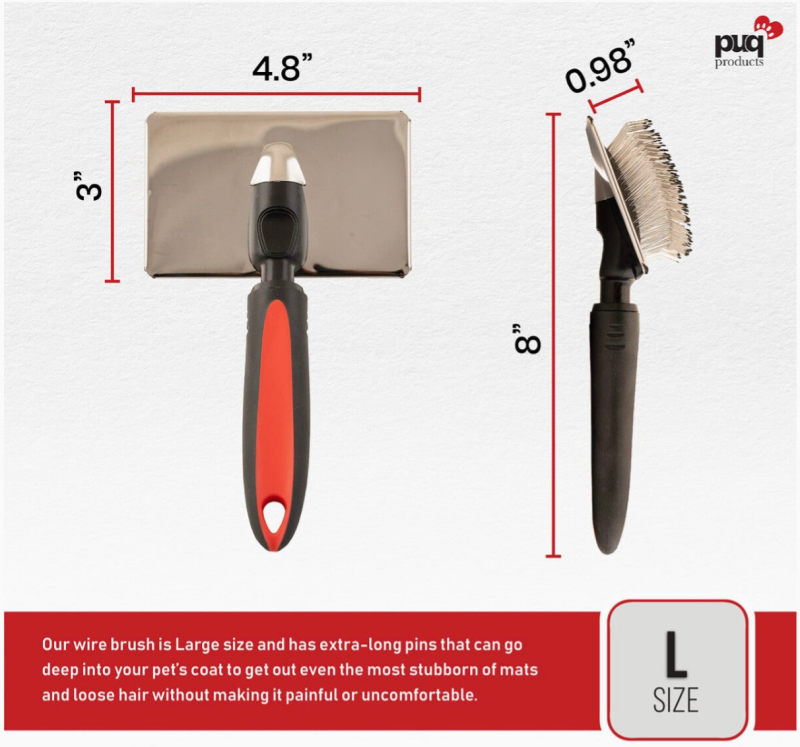 I recommend this comb because it has a sturdier handle and longer pins making the process a lot easier! I use this exact one on almost every dog. The larger size helps go through more hair, saves your hands and wrists, allows you to find hidden tangles and easily get all the way down to the skin.